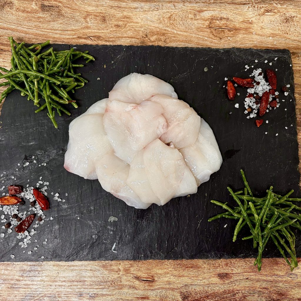 Monkfish cheeks, a true delicacy with a firm, boneless and subtle, sweet flavour, similar to that of scallops. Monkfish cheeks are often tossed to the side as they can be a bit fiddly to remove. However, the team at Fresh Fish Daily believe in using every part of the fish as much as possible. And when these are as good as they are it’s a true sin to waste them.