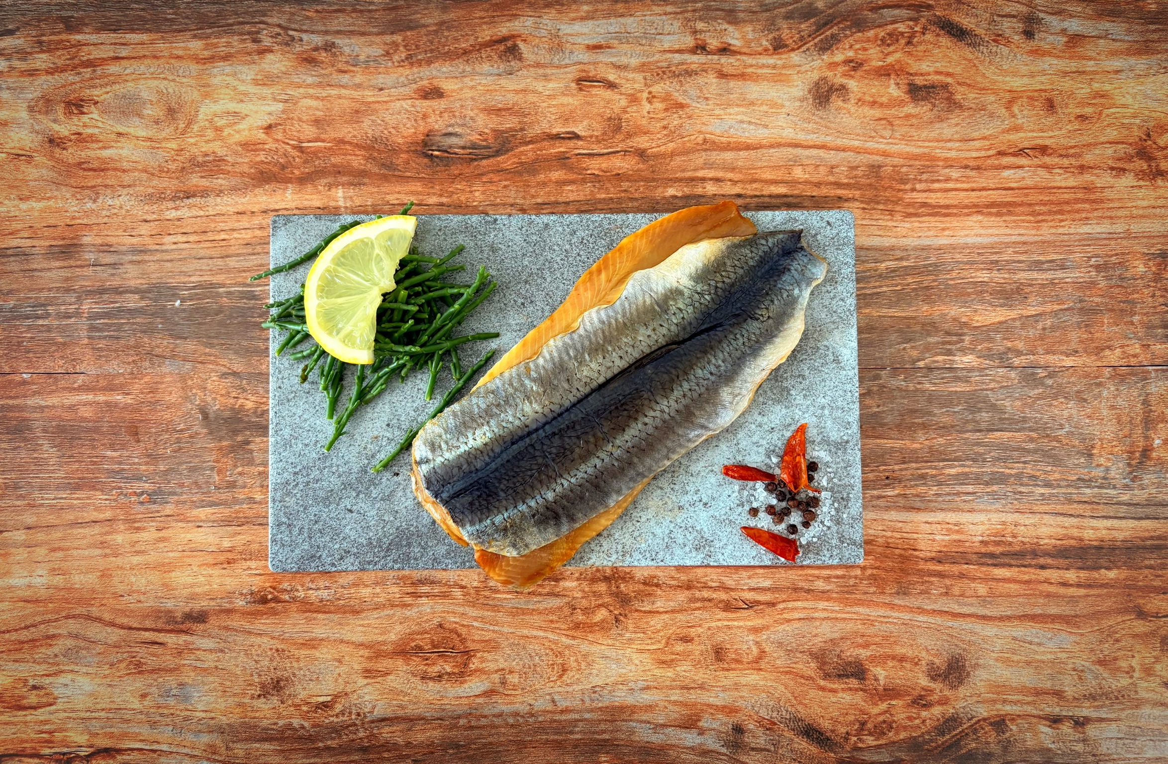To make these exceptional kippers, herring are split then smoked over a blend of hardwoods. Free from additives and dye, the fish are prepared with the central bone in place and vacuum-packed in pairs to ensure maximum flavour.
